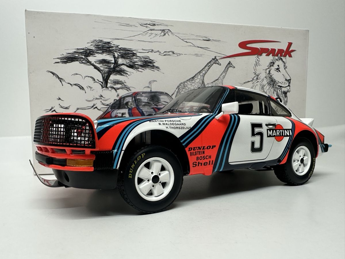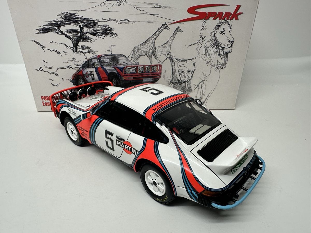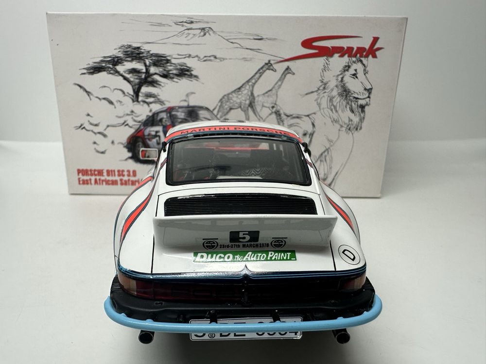 Porsche 911 SC 3.0 Martini East African Safari Rallye  from Spark Models on 1/18 scale.